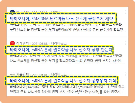 2021년 6월 18일, 바이오니아는 mRNA(리보핵산)을 분해하는 신약의 원료의약품과 구리 나노 선을 제조할 수 있는 공장 부지 약 18,0007평을 충청남도 공주시에 확보했습니다.
