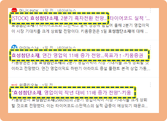 이 날 키움증권은 5효성첨단소재의 2분기 영업이익이 시장 전망치를 훨씬 웃돌면서 저년도 대비 흑자 전환할 것이라고 전망했습니다.