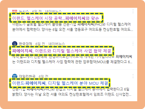 2021년 7월 6일, 피에이치씨가 이랜드와 디지털 헬스케어 사업과 관련된 MOU를 체결했다고 발표했습니다.