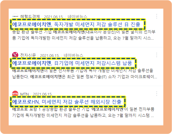 2021년 6월 16일, 에코프로에이치엔이 일본 IT 소자 기업과 마이크로웨이브를 활용한 휘발성유기화합물 저감시스템 공급 계약을 체결했다고 발표했습니다.