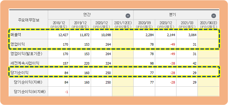 그리고 연간 당기순이익은 2020년 기준으로 250억원을 기록하면서, 전년도에 기록한 160억원 대비 약 56% 증가했네요.