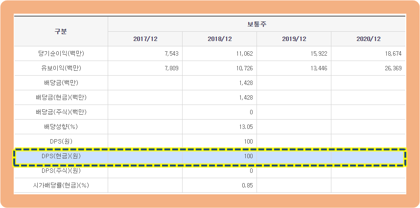 지난 2017년, 2019년, 2020년도에는 배당금을 지급하지 않았는데요.