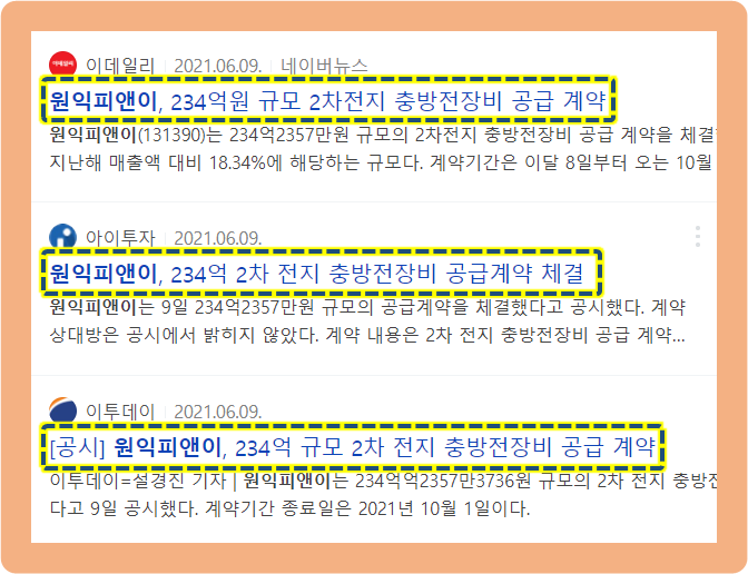 지난 2021년 6월 9일,원익패앤이가 2차 전지 충방전장비 관련 공급 계약을 체결했다는 공시를 발표했는데요.