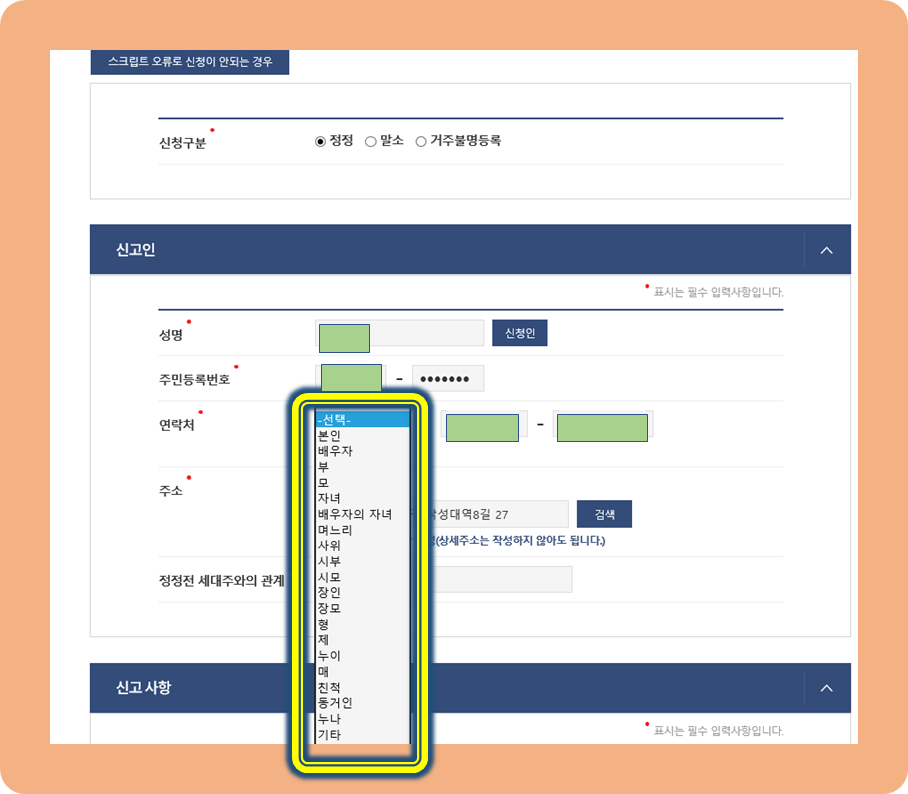 그다음 신청자의 인적사항을 적어야 하는데요~