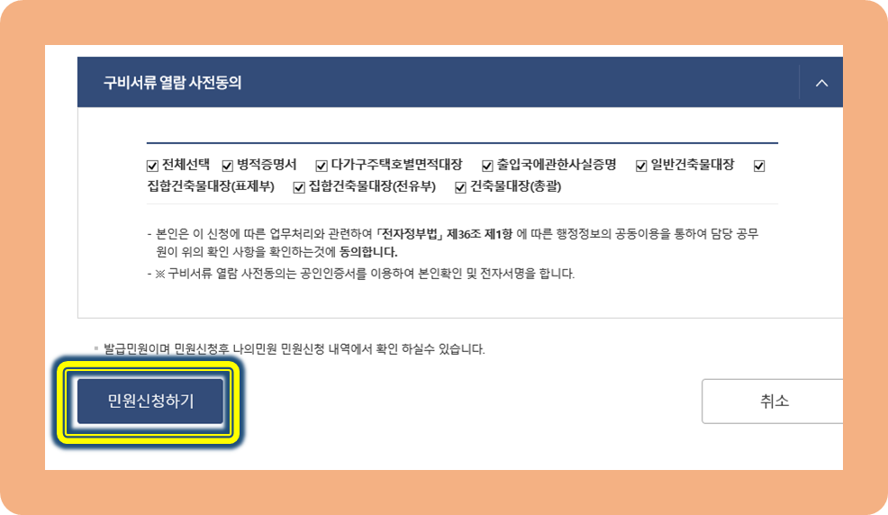 그 다음 이렇게 민원 신청하기를 눌러주시면 되는데요~