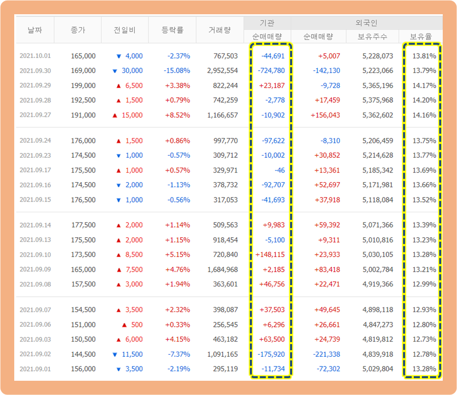 최근 기관 및 외인 투자자 거래 동향