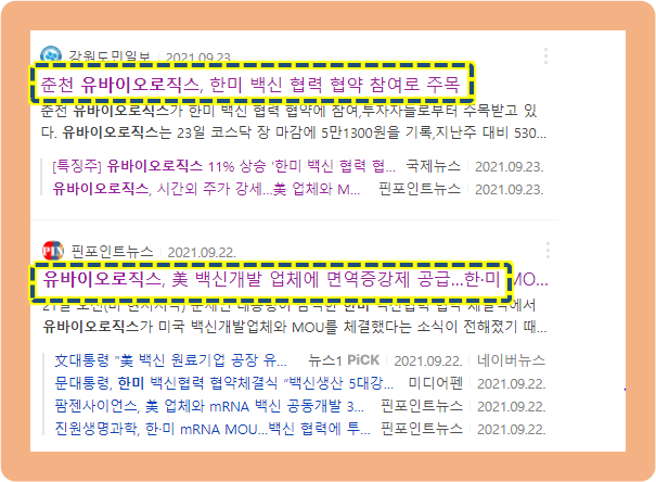 2021년 9월 21일, 문재인 대통령이 한미 백신협력 협약 체결식에 참석했었는데, 이 협약식에서 유바이오로직스가 미국 백신개발업체와 업무협약을 체결했습니다.