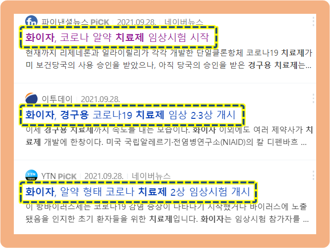 미국 현지시간으로 2021년 9월 27일, 미국 기업 화이자가 PF-07321332라는 명칭의 경구용 코로나 치료제에 관한 임상 2상과 3상 시험을 시작했다고 합니다.