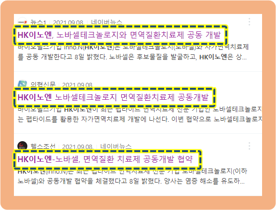 2021년 9월 8일, HK이노엔이 펩타이드 면역치료제 전문 업체인 노바셀(노바셀테크놀로지)과 면역질환 치료제 개발 협약을 체결했는데요.
