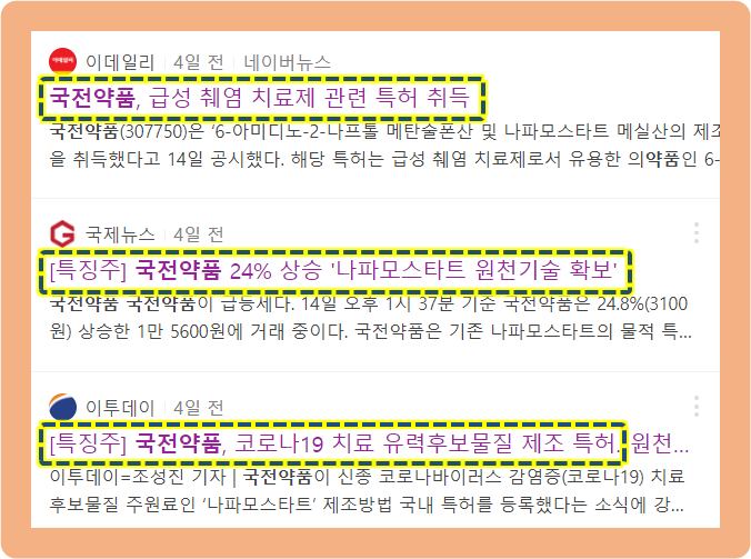 이 소식으로 인해 국전 약품이 수혜를 받았는데요.