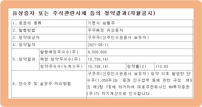 2021년 6월 : 약 465억원 수준의 유상증자 성공.