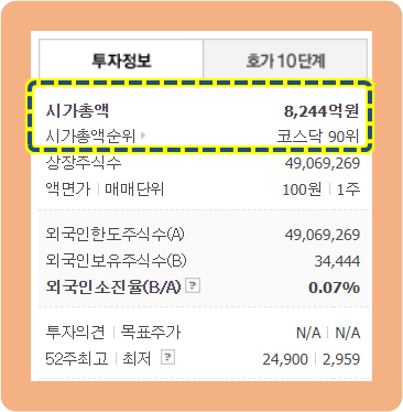 52주 최고가는 24,900원이며, 최저가는 2,959원이구요.