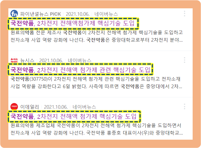 2021년 10월 6일, 국전약품이 2차전지 전해액 첨가제와 관련된 핵심적인 기술을 도입한다는 소식을 발표했습니다.