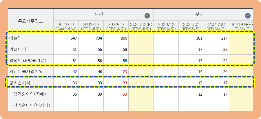 그리고 연간 영업이익은 50억원대 수준을 유지해주고 있는데요.
