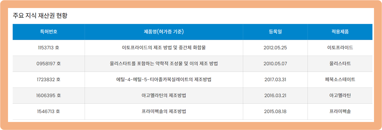이 기업은 완제 의약품의 바로 전 단계인 원료의약품을 제조하는 제약회사로써, 유한양행, 일동제약, GC녹십자 등 유명 기업들을 고객으로 확보하고 있습니다.