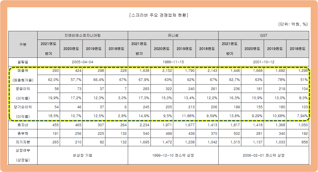 ㅇ스크러버 장비와 관련된 경쟁업체로는 유니셀, GST가 있습니다.