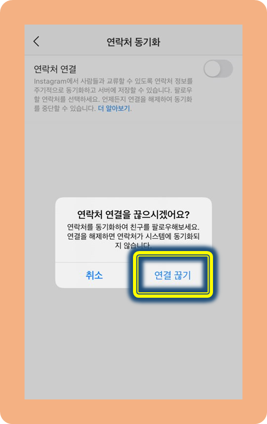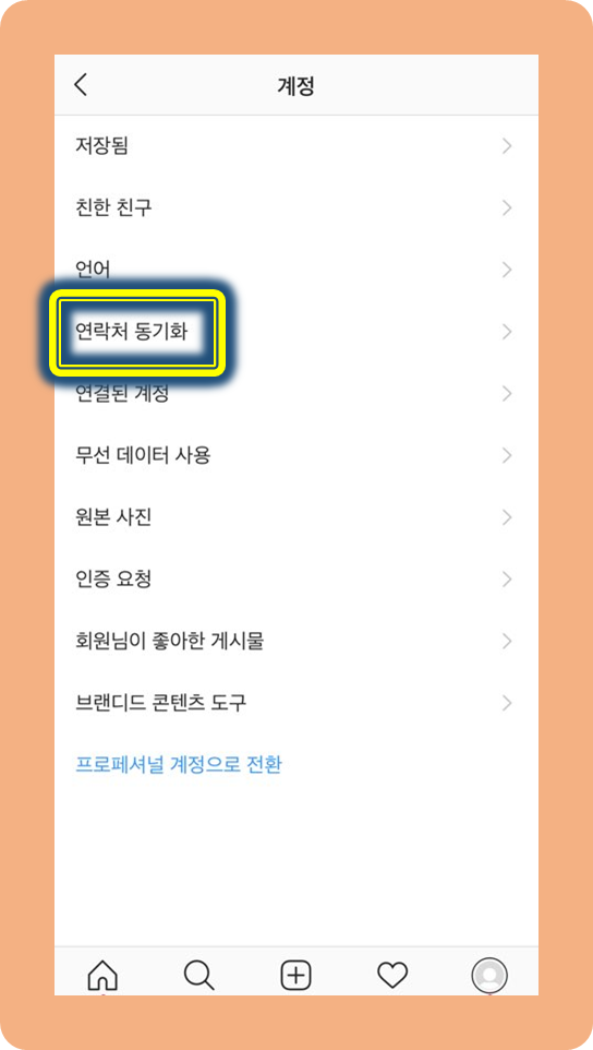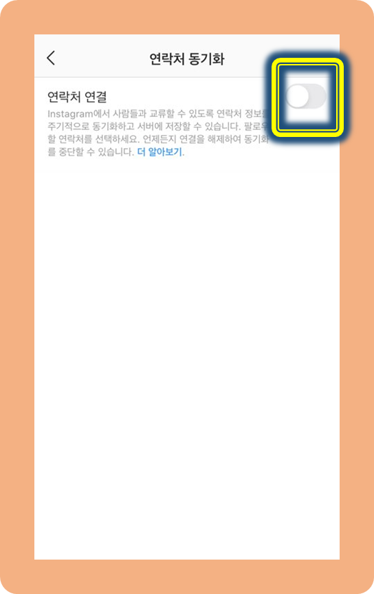 연락처 동기화를 활성화하시면! 핸드폰 연락처에 있는 친구들이 인스타그램에서 추천되는거에요~!