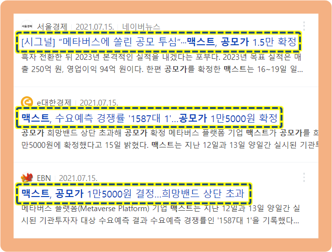 지난 2021년 7월 12일~13일, 이틀 간 맥스트는 기관투자자들을 대상으로 수요예측을 진행했었는데요.