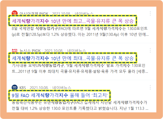 지난 2021년 10월 8일, FAO(국제 식량농업기구)에 의하면 2021년 9월의 세계식량가격지수는 130.0포인트를 기록했다고 하는데요.
