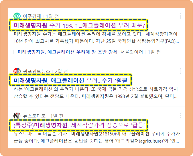 애그플레이션 우려에 따른 미래생명자원 주가 수혜