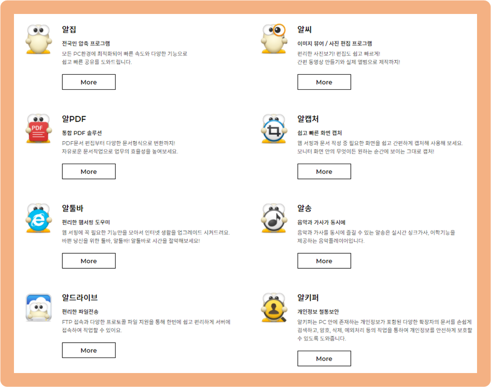 우리나라대표 압축 프로그램인 알집과 더불어 알PDF, 알송 등으로 구성된 알툴즈는 지난 2016년도에