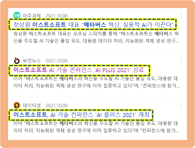 지난 2021년 10월6~7일, 이틀 간, 이스트소프트는 AI 전문가가 참여하여 기술을 공유하는 AI PLUS 2021를 개최했습니다.