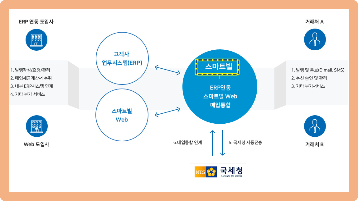 타 기업의 매입 세금계산서를 ERP에서 수집, 취합, 관리 등을 모두 한 번에 할 수 있는 원스톱 서비스이죠.