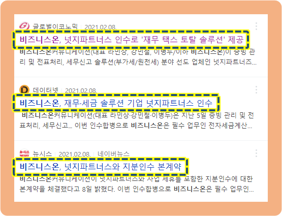 우선, 지난 2021년 2월 8일 비즈니스온이 전표처리 관리 및 증빙처리 관련 업체인 넛지파트너에 대한 지분 인수 계약을 체결했다는 공시가 발표되었습니다.