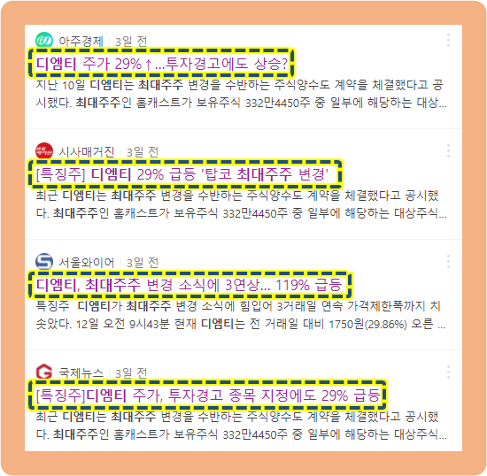 디엠티 최대주주 변경 소식으로 인한 상한가