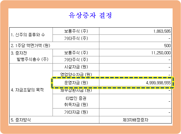 운영 자금 조달을 위해 약 50억원 규모의 제3자배정 유상증자를 진행한다는 내용인데요.