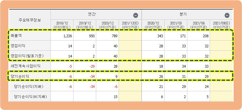 2020년 기준으로 영업이익과 당기순이익은 각 40억원(약 20배 증가), 9억원(흑자 전환 성공)을 기록한 상황입니다.