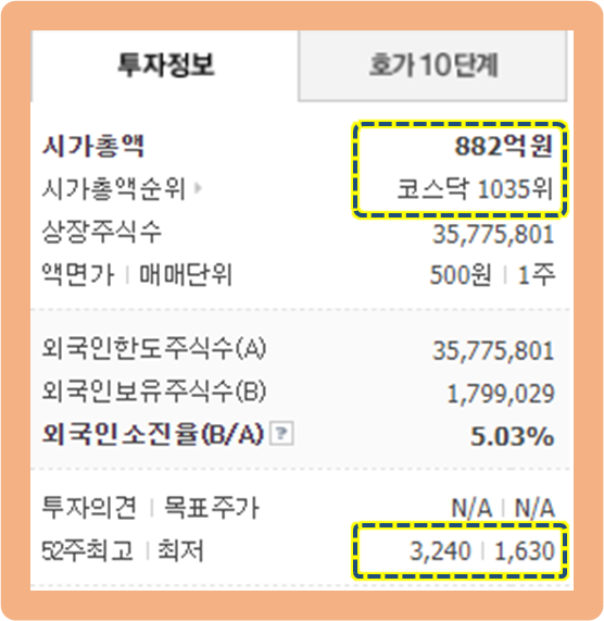 현재 시가총액 약 882억원으로 코스닥 1,035위인 기업입니다.