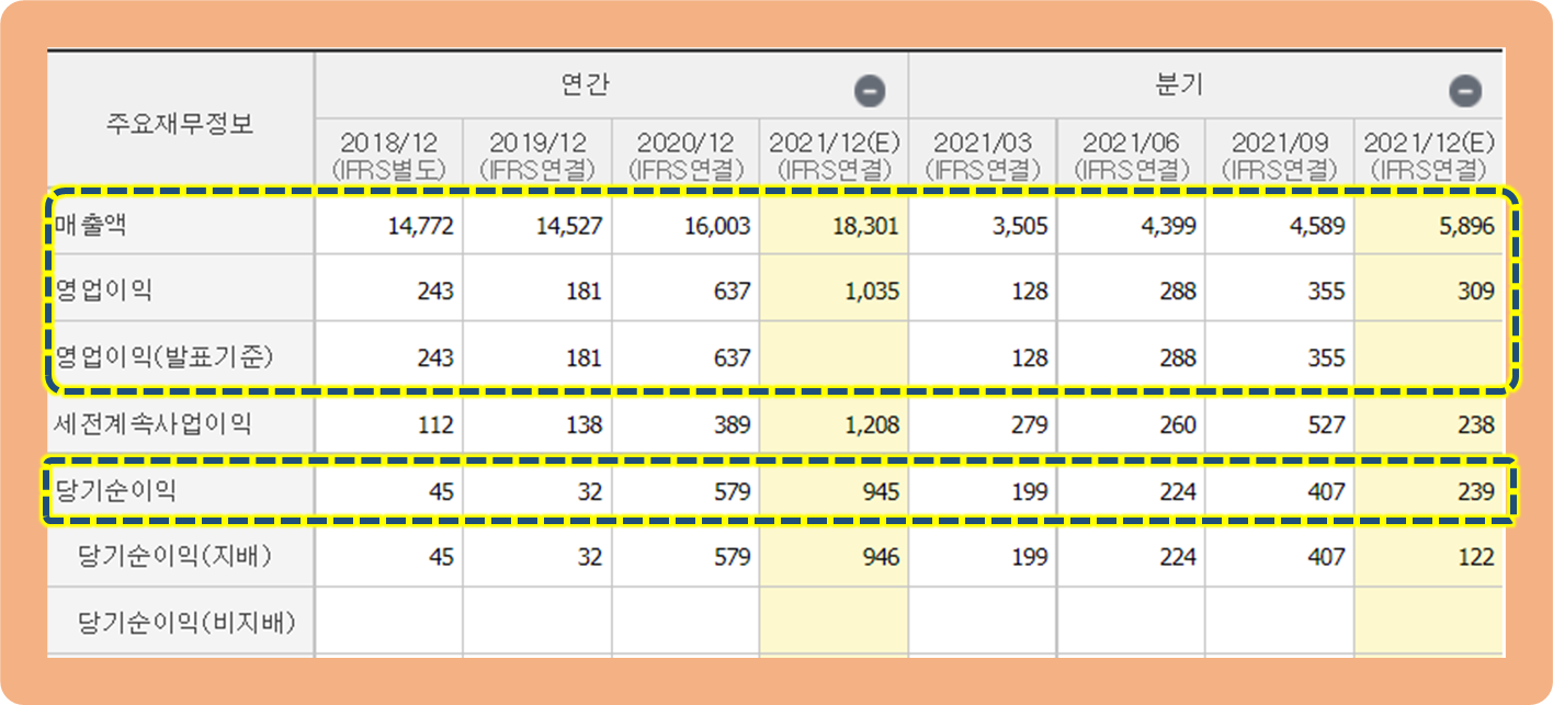 그리고 아까 위에서 말씀드렸듯이 2021년 3분기에도 호실적을 달성했는데, 최근 실적이 급속도로 성장하고 있는 모습을 보여주고 있네요.