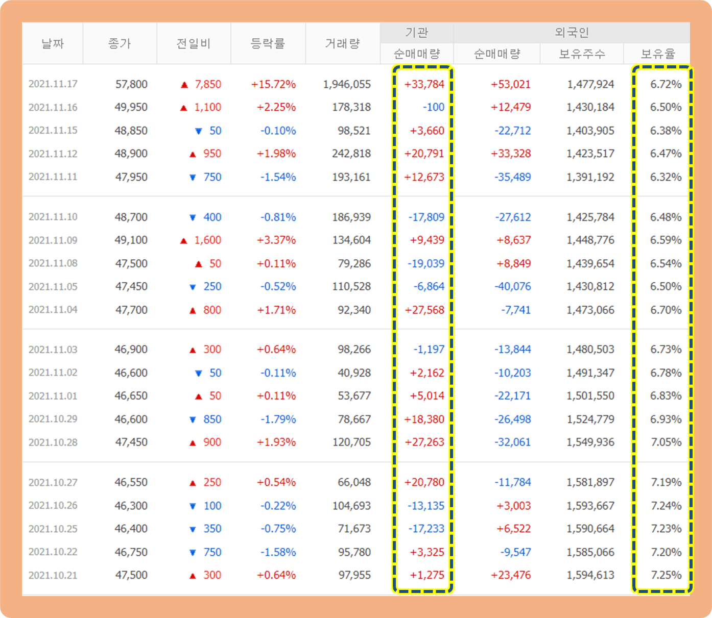 최근 기관 투자자 외국인 투자자 매매 추이