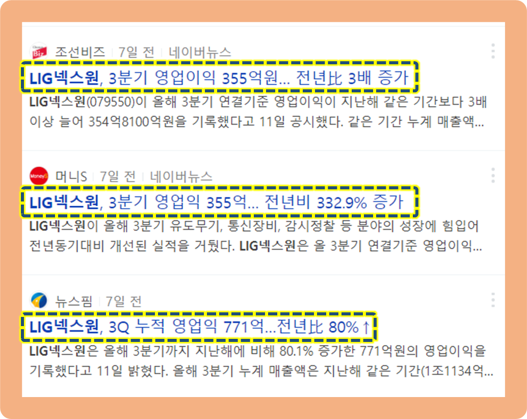 지난 2021년 11월 11일, LIG넥스원의 2021년 3분기 영업이익이 전년도 동기 대비 무려 약 333% 상승한한 355억원을 기록했다는 공시가 발표되었습니다.