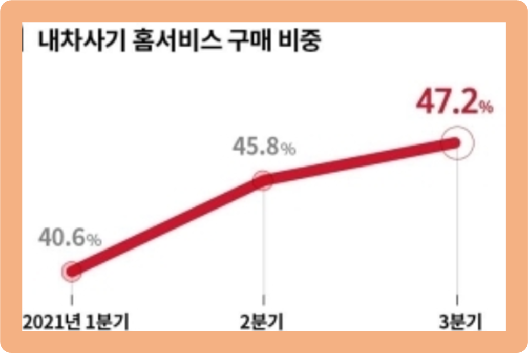 케이카가 발표한 내차사기 홈서비스 구매 비중 추이를 살펴보도록 하겠습니다.