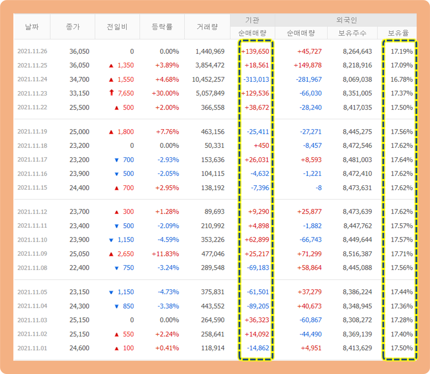 최근 기관 투자자 및 외국인 거래 추이