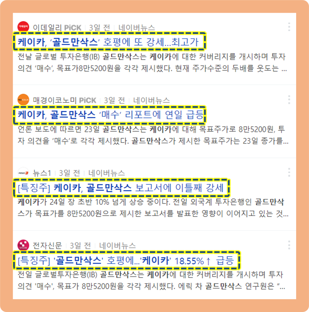케이카, 골드만삭스 호평 및 분석 리포트 수혜