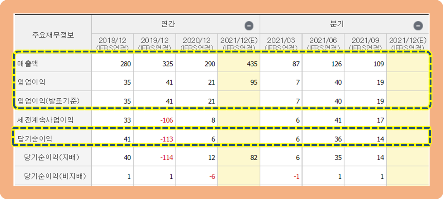그리고 연간 영업이익도 약 21억원을 기록하면서 전년도에 기록한 41억원에 비해 반토막이 나버렸는데요.