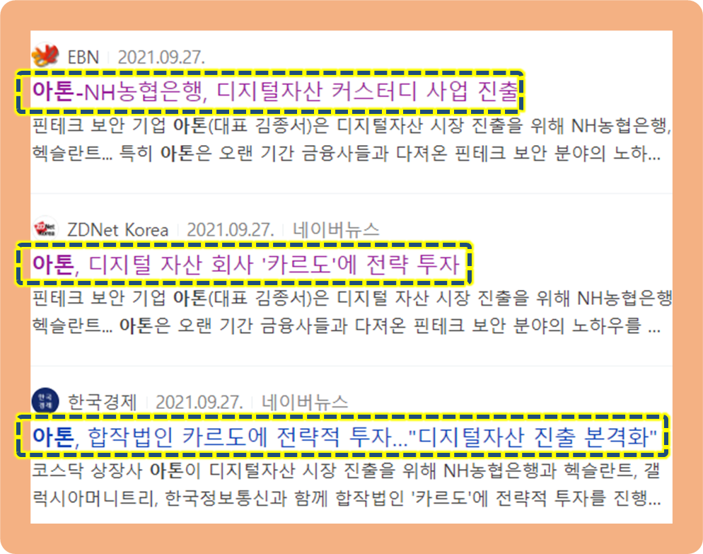 지난 2021년 9월, 아톤이 갤럭시아머니트리, 농협은행, 한국정보통신, 헥슬란트와 협력하여 합작법인 카르도에 투자한다는 소식이 발표되었습니다.