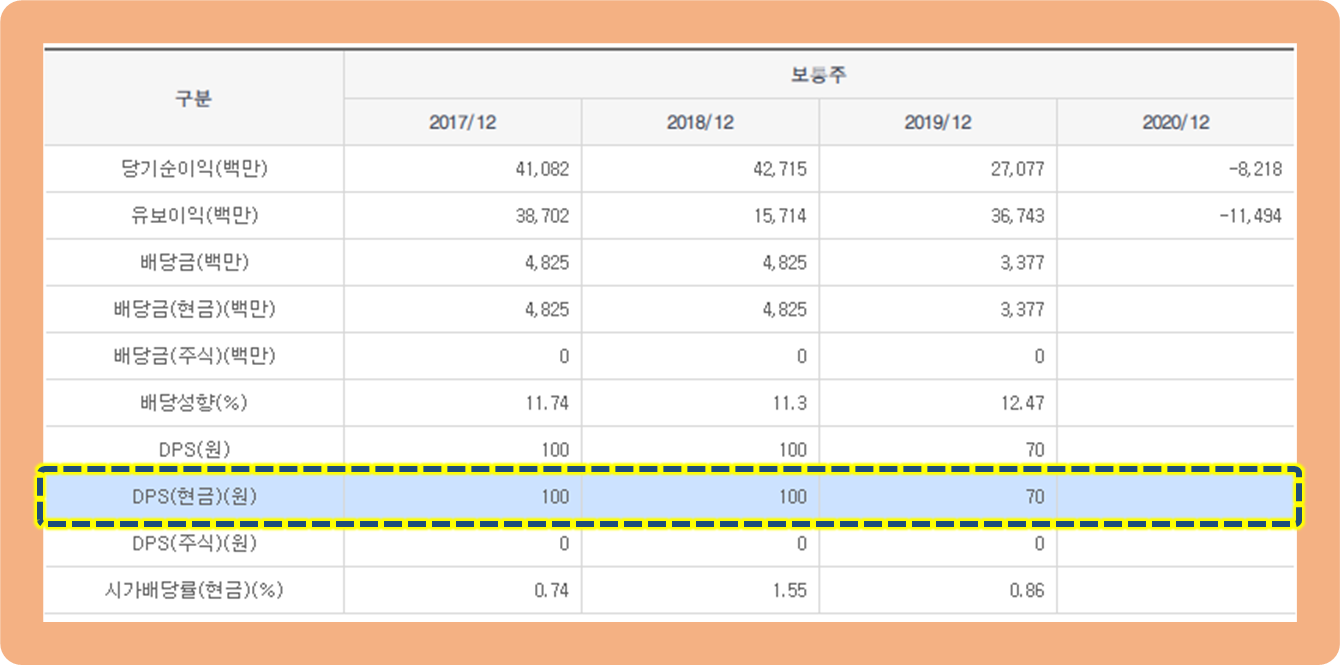 2017년 : 100원 / 2018년 : 100원 / 2019년 : 70원의 배당금을 지급해왔으며, 배당수익률은 1% 내외 수준이었는데요.
