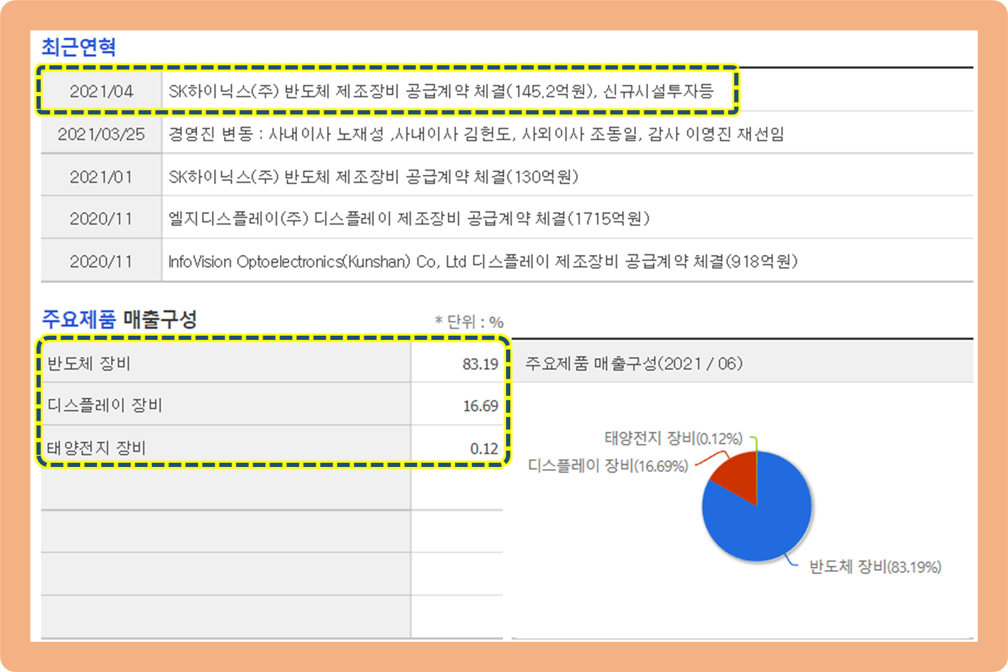 (아직 표에는 반영이 되지 않았지만, 지난 2021년 7월에도 SK하이닉스와 약 121억원 규모의 반도체 제조장비 공급 계약 소식도 있었죠.)