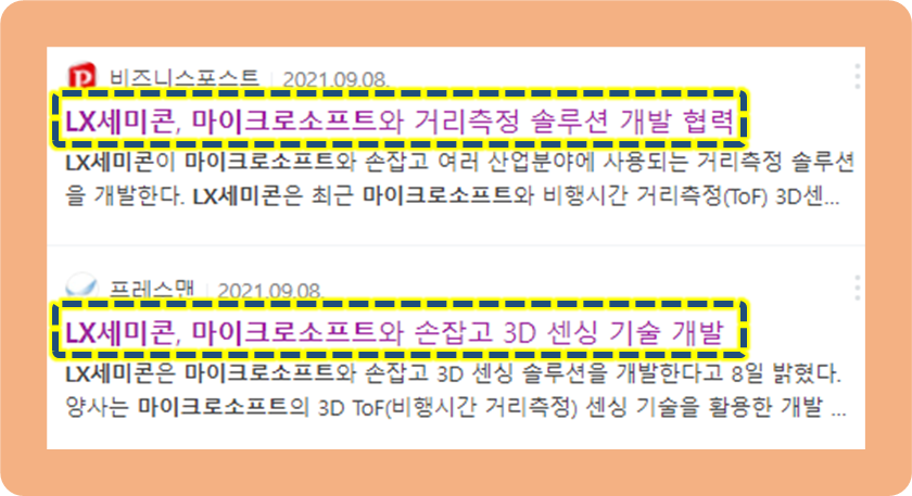 지난 2021년 9월 8일, LX세미콘이 마이크로소프트와 TOF(비행시간 거리측정) 3D 센싱 솔루션 개발에 관한 MOU를 체결했다고 발표했습니다.