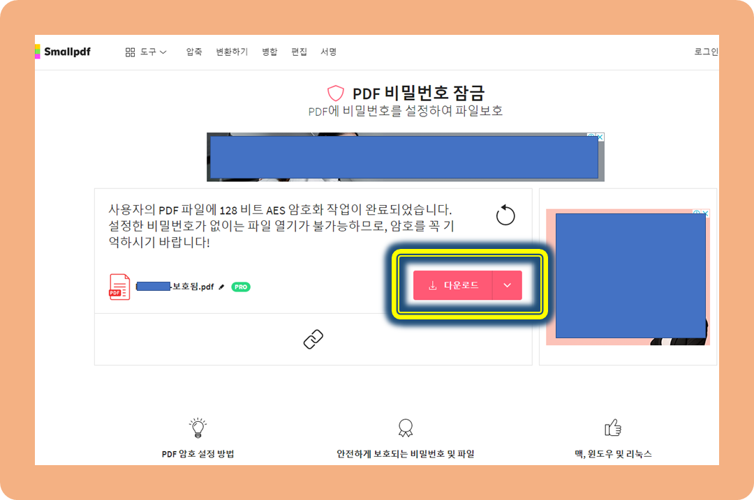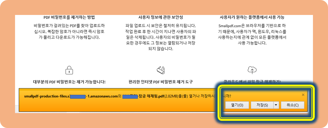 조그만 네모 박스에 체크하시구 PDF 잠금 해제를 눌러주도록 해요