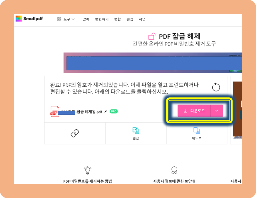 이번엔 PDF 잠금해제라는 메뉴로 들어갈게요~