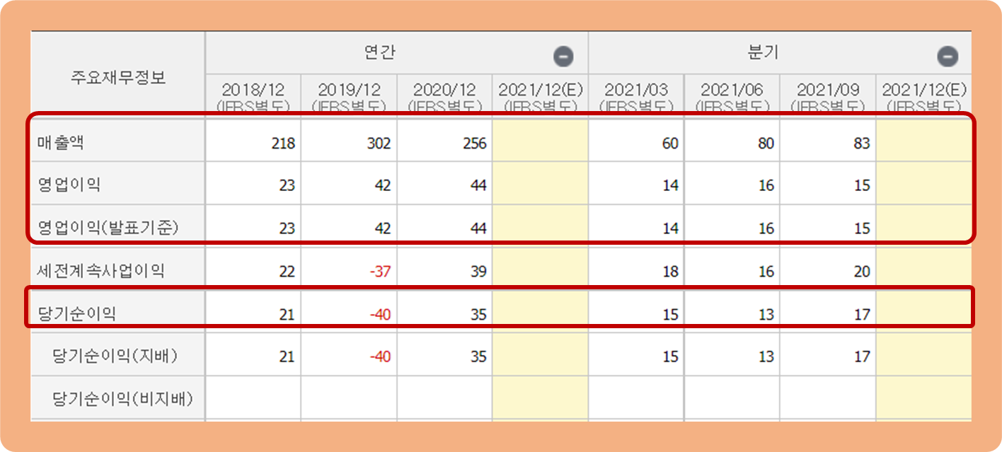 또한, 앞서 말씀드렸던 것처럼 2021년 3분기 누적 영업이익과 당기순이익은 각 45억원, 45억원을 기록하며 이미 역대 최대 실적을 갱신한 상황입니다.