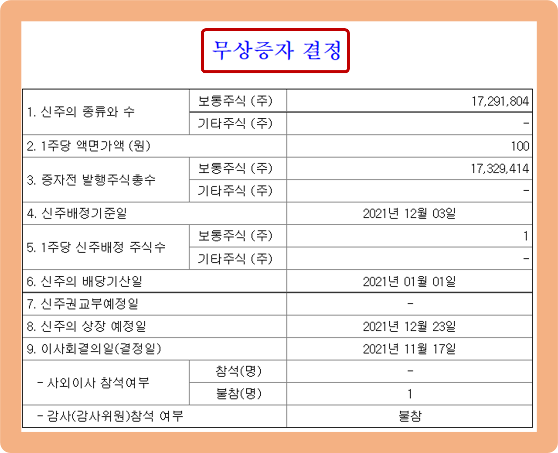 지난 2021년 11월 17일, 알로이스가 공시를 통해 보통주 1주당 신주 1주를 배정해주는 방식의 무상증자를 결정했다고 발표했습니다.