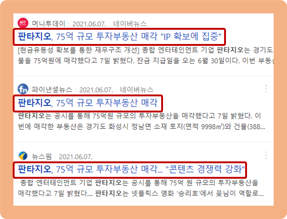 지난 2021년 6월 7일, 판타지오가 약 75억 원 규모의 부동산을 매각했다고 발표했습니다.