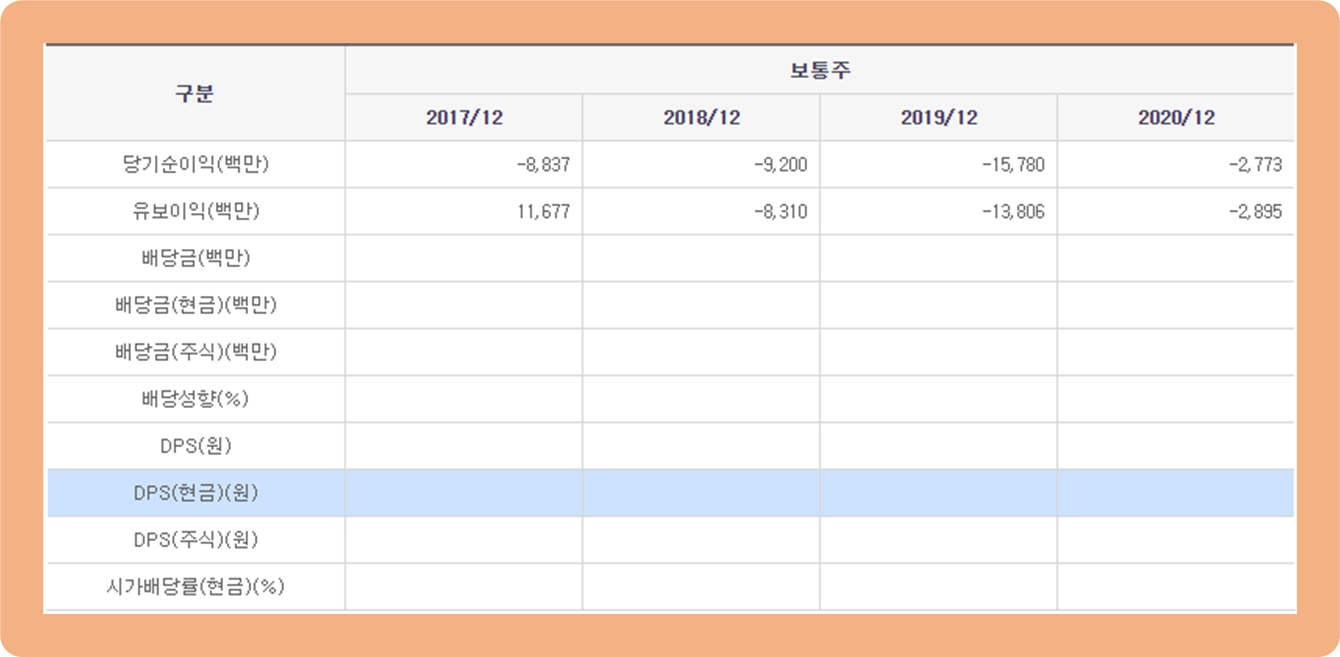 현재 이 기업은 주주분들에게 배당금을 지급하지 않고 있으니 참고하시기 바랍니다.