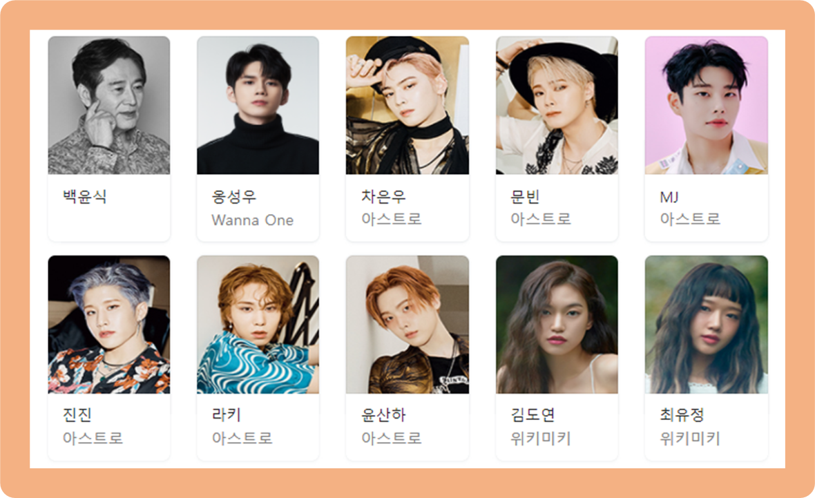 그리고 워너원의 옹성우, 아스트로, 위키미키 등의 아이돌 가수들이 한솥밥을 먹고 있는 모습이네요.